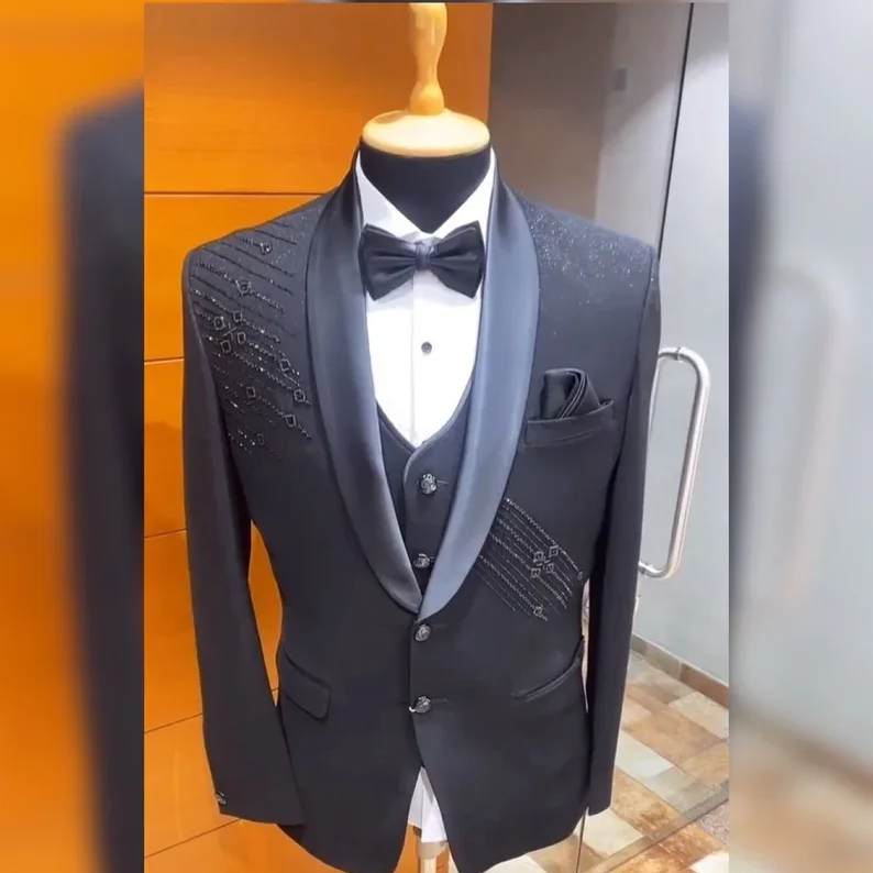Black Designer Hand Embroidered Tuxedo, Traditional Groom Black Tuxedo, Wedding Jodhpuri Indian Jacket, Designer Jodhpuri Suit