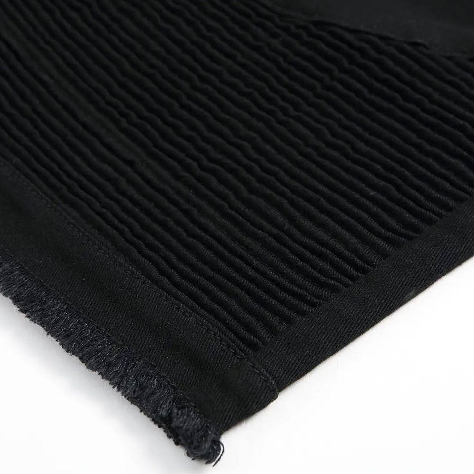 "Black front zipper shorts for men Denim Knee Length Slim Fit Casual Summer Wear with distress bottom"
