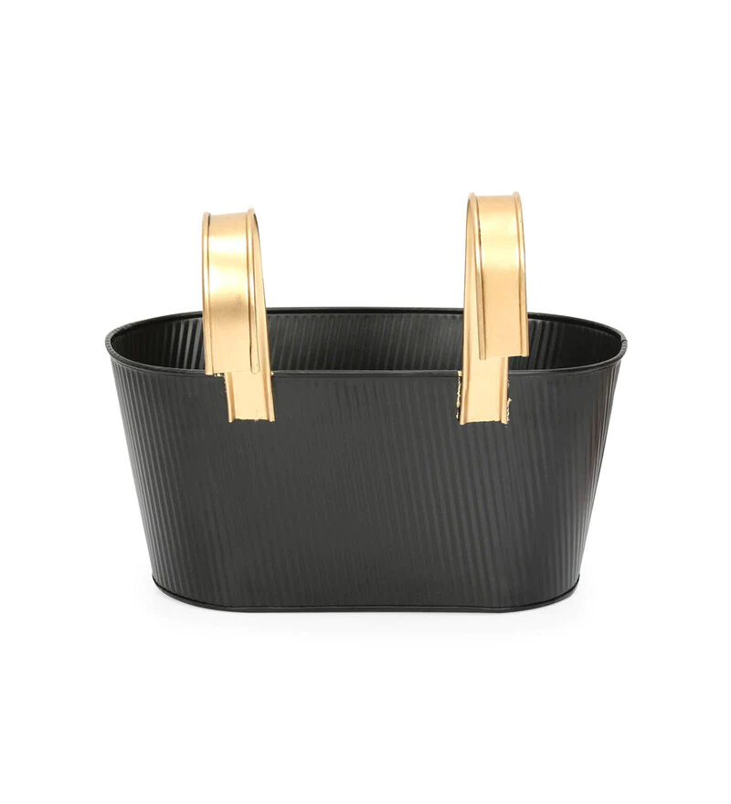 Black and Golden Metal Iron Wall Planter Oval Shape Railing Planter Flower Pot for Indoor and Outdoor Decorative
