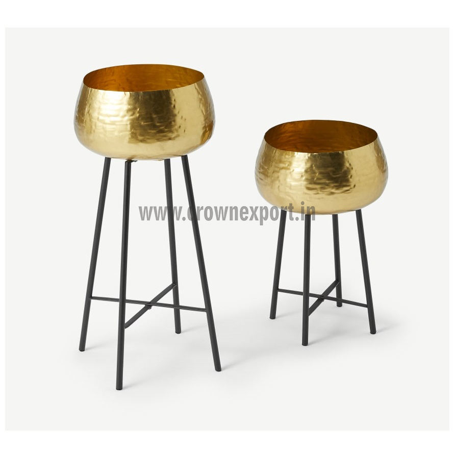 Black & Gold Garden Pot Planters with Iron Modern Stand Medium Size Planter for Decoration Standing Garden Planters Crown Export