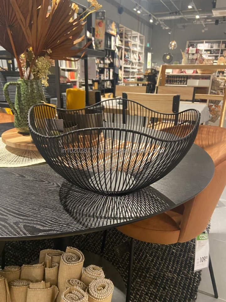 Black iron fruits basket with round base perfect for keeping assorted fruits fresh longer on dining table