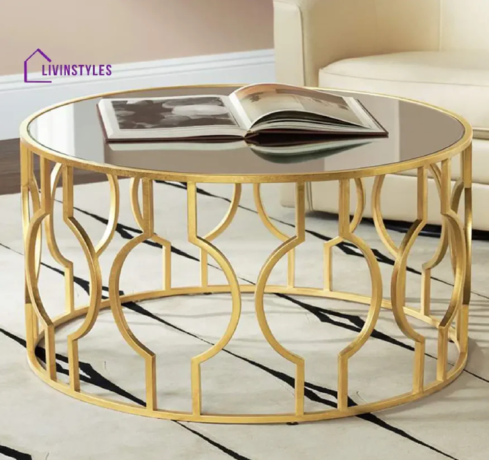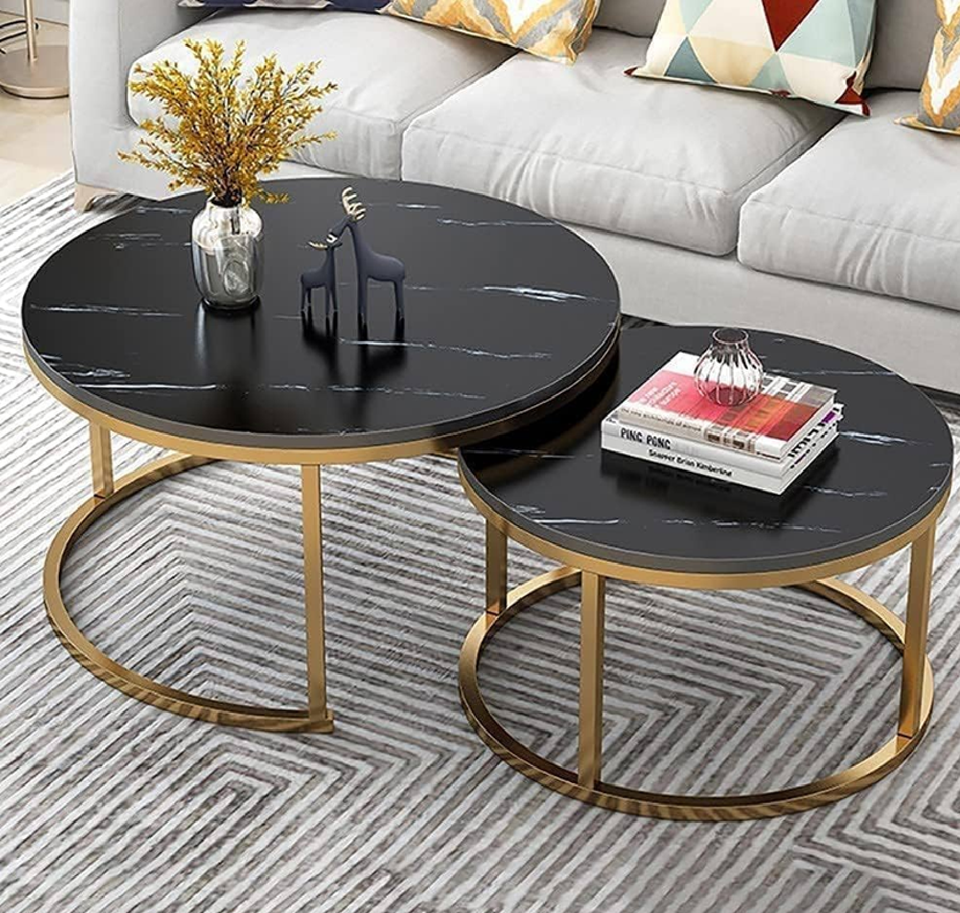 Black marble-patterned round top and a gold-colored metal base two nesting coffee tables for Living Rooms at Wholesale Prices