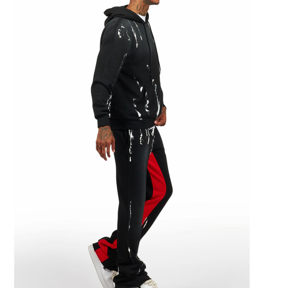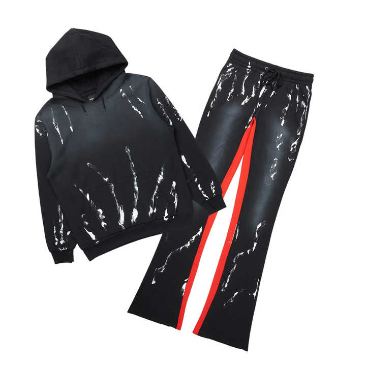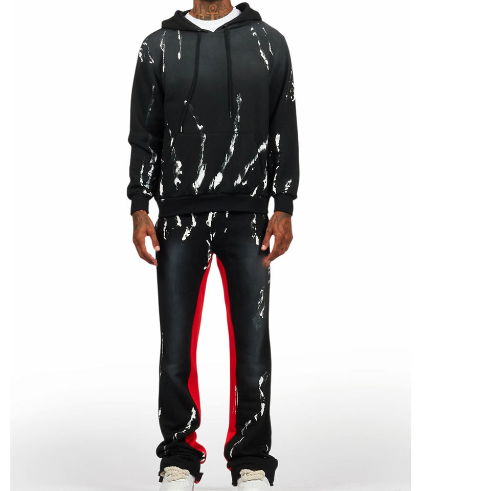 Black mens printed hoodie and jogger tracksuit stylish streetwear casual fashion gym workout activewear comfortable sport outfit