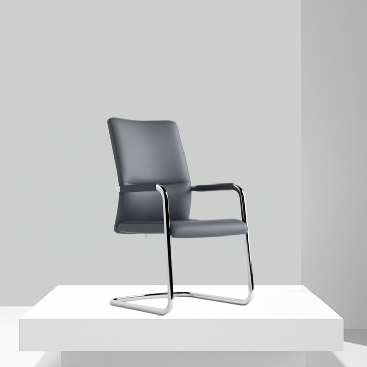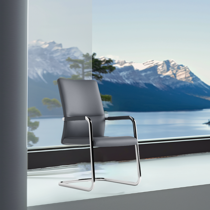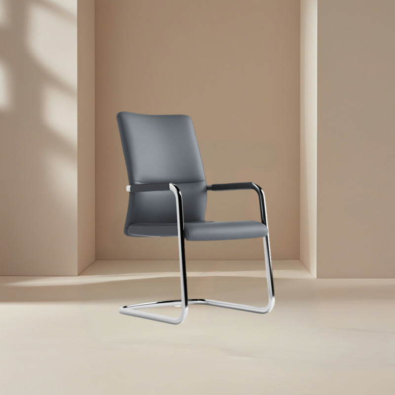 Black minimalist steel frame bow-shaped chair legs office chair with soft natural cotton and no wheels