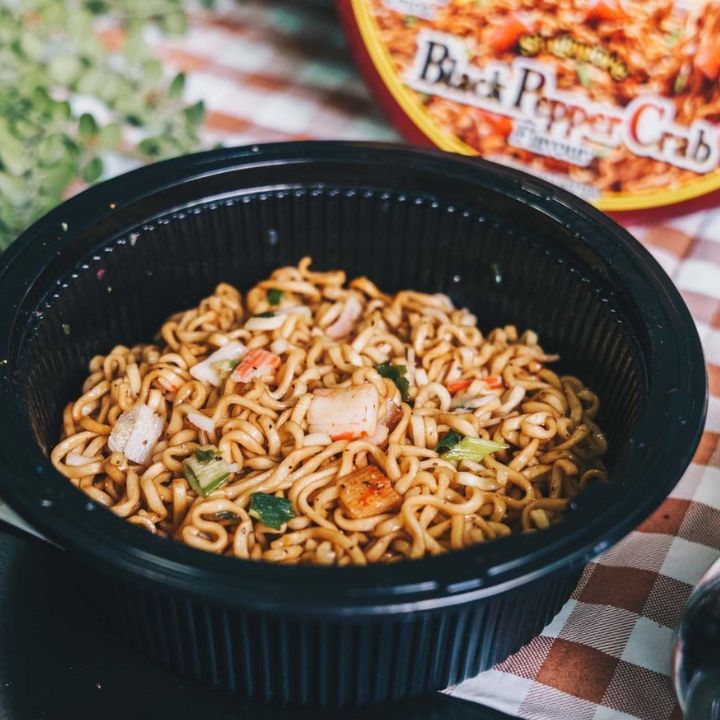 Black Pepper Seafood Dry Noodles Spicy Crab Flavored Cup Pack Fast Cooking Local Inspired Instant Lunch Snack Bulk for Travel