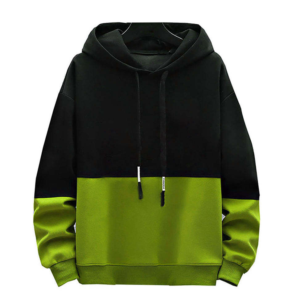 Black purple colorblock hoodie men stylish casual wear comfy soft fabric pullover long sleeve modern design warm trendy