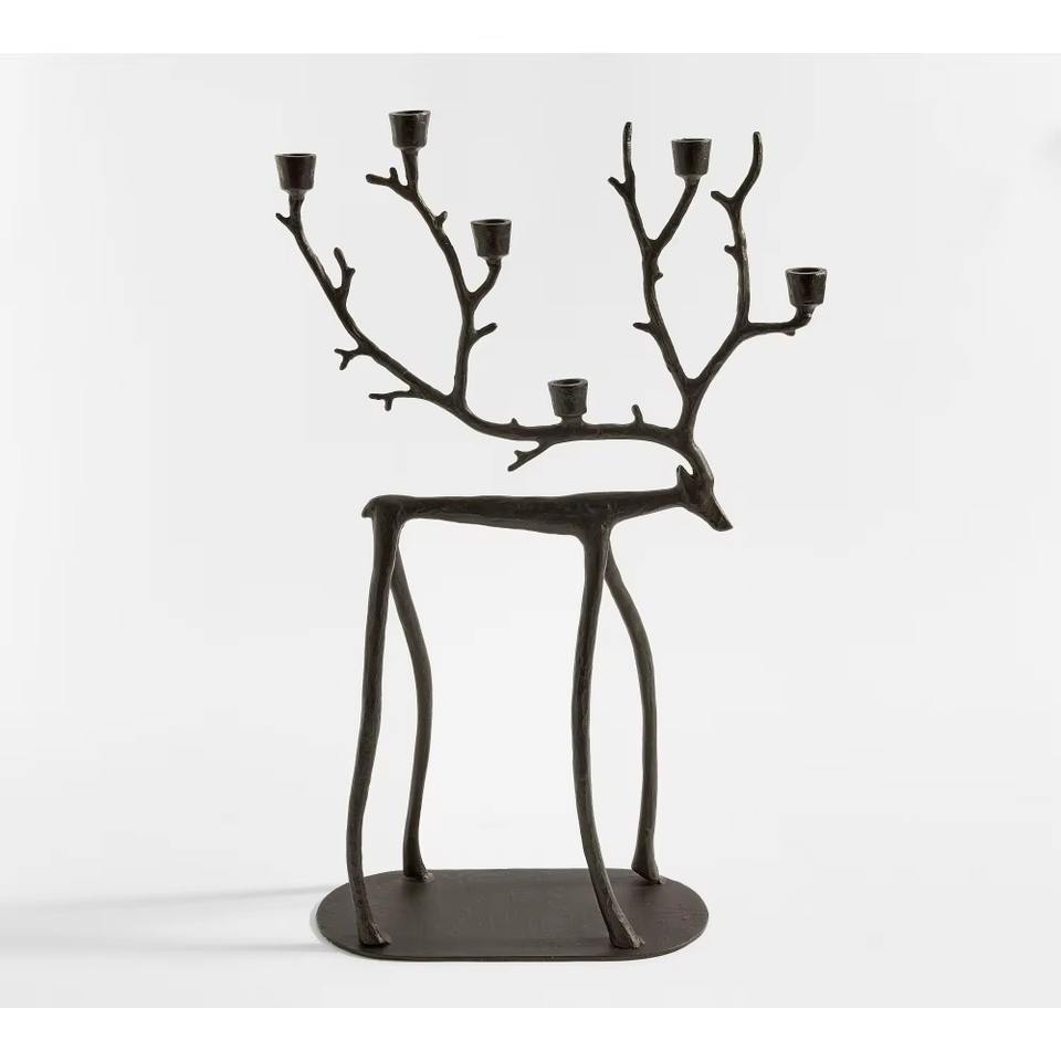 Black reindeer candle holder with antler design decorative stand for festive table lighting or elegant home interior decor