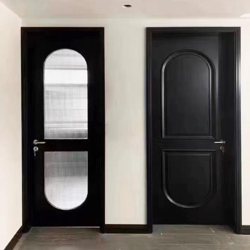 Black retro French wooden door, interior door, composite lacquered silent door, solid wood door manufacturer supplies