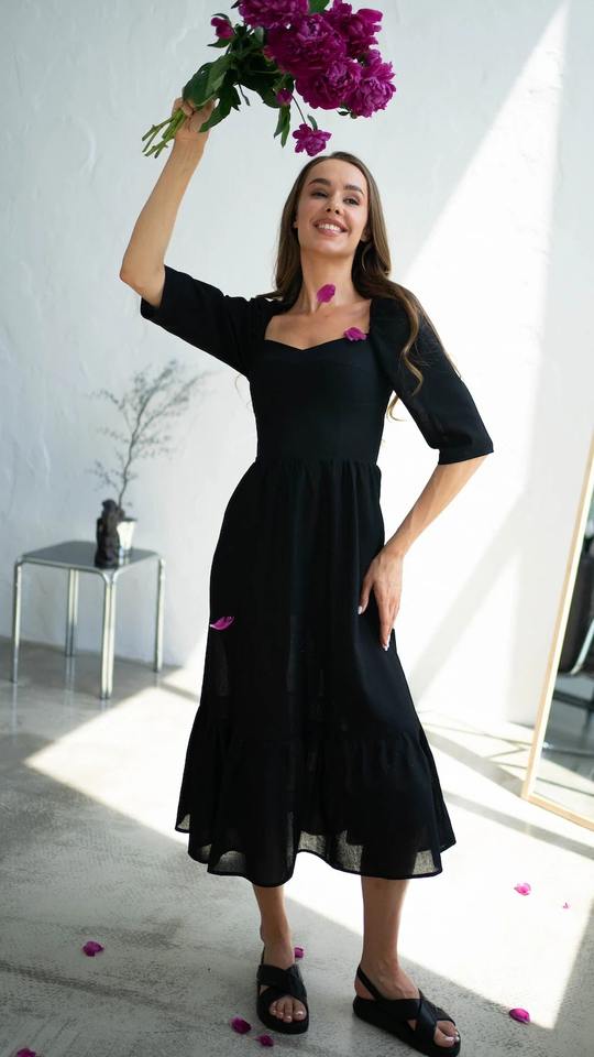 Black Romantic Corset Dress Princess Linen Midi Black Dress Boho Wedding White Dress Summer Woman Clothing