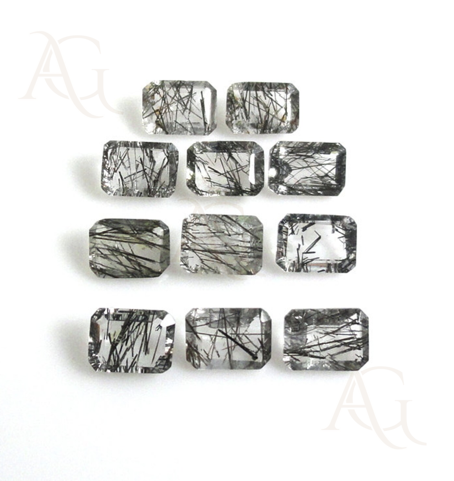 Wholesale 8x10mm Black Rutilated Quartz Octagon Emerald Faceted High Quality Silver Gold Jewelry Making Natural IGI Certified