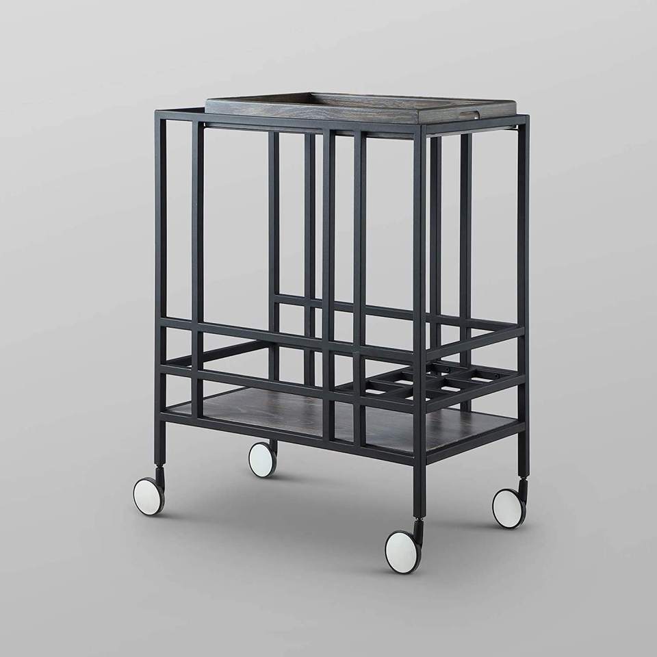Black Stainless Steel Modern Bar Cart for Home Hotel Restaurant Kitchen Use with Wine Glasses Holders Living Room Application