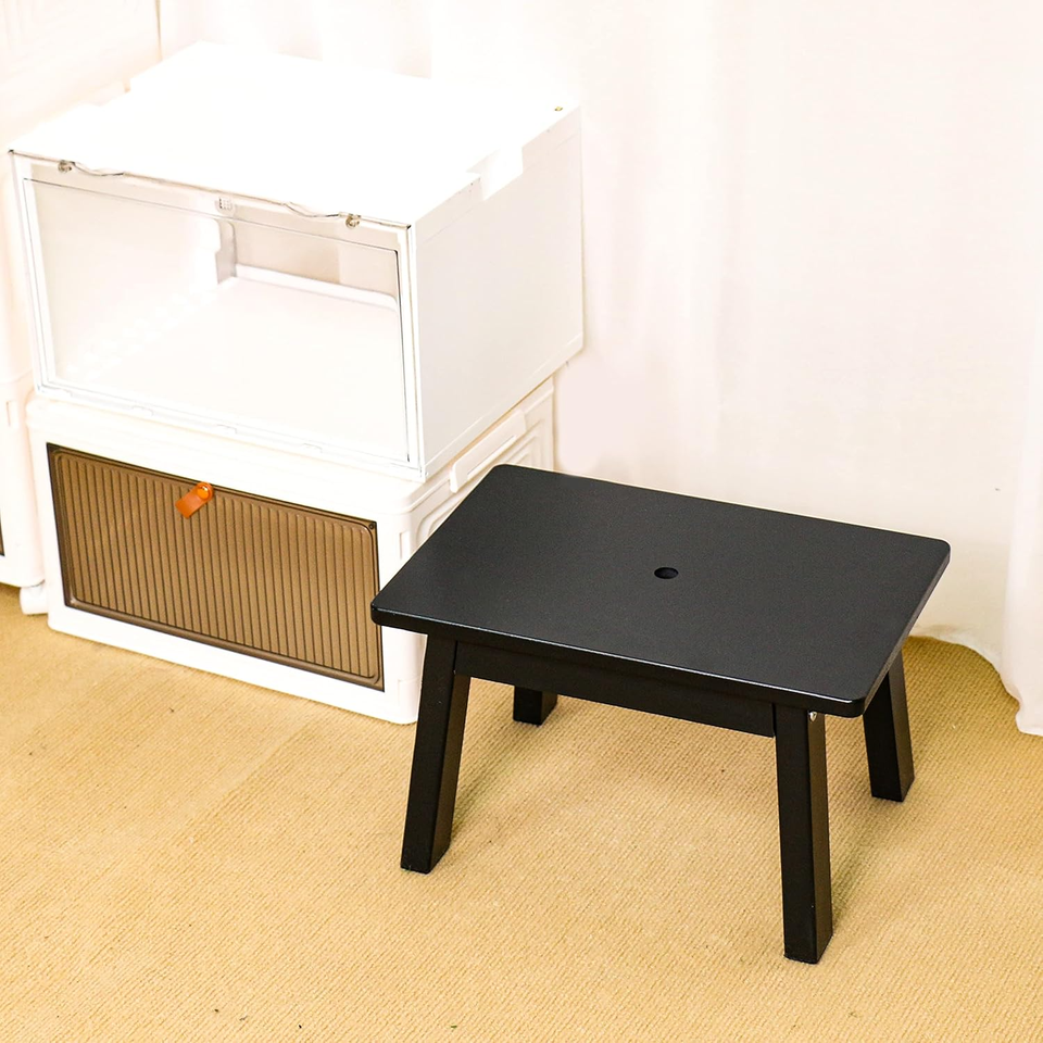 Black wooden step stool for home and kitchen use Small multipurpose footrest stool for adults and kids Rectangular wooden stool