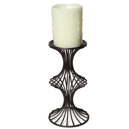 Black wrought iron candle holder for patio balcony or garden decor with elegant vintage curves and solid metal base