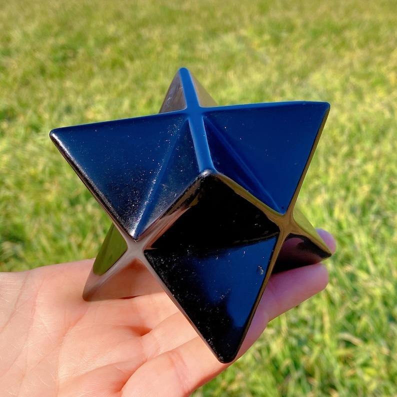 BlackObsidian Merkaba Star Through-Carved Gemstone Love Feng Shui Spiritual Healing Tool REIKI Premium Home Decoration