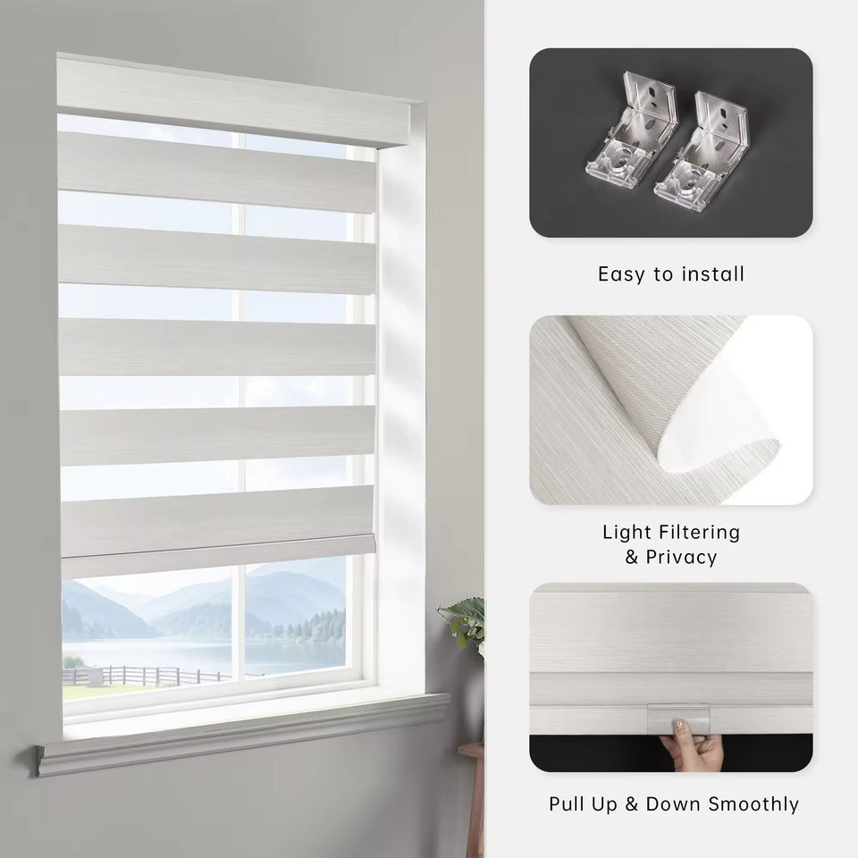 Blackout Cordless Roller Shades Manual or Motorized Smart Blinds for Windows Easy Built-In Installation Electric Format