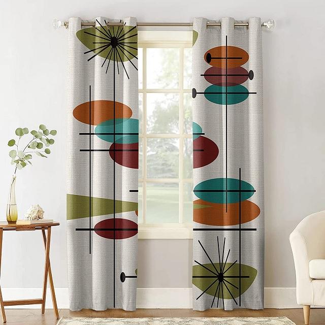 Blackout Curtains Mid Century Geometry Abstract Lotus Turquoise Orange Olive Green Maroon Rustic 2 Panels Thermal Window Drapes