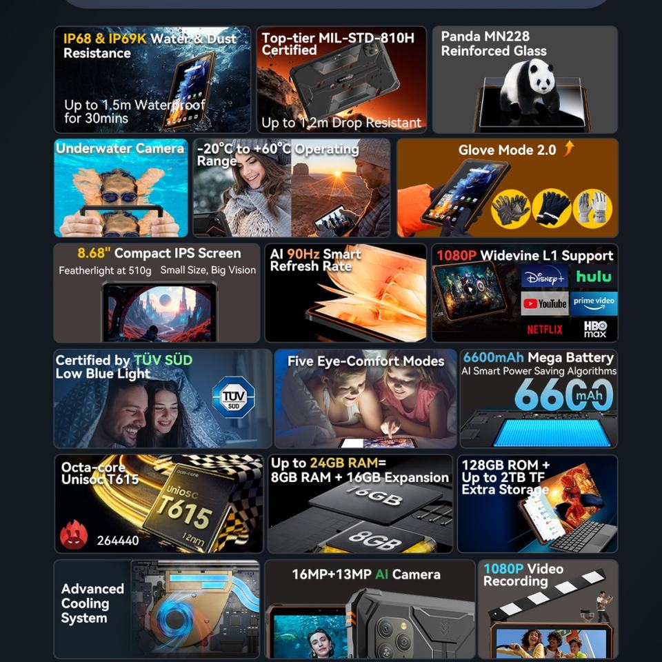 Blackview Active 5 Rugged Tablet PC Android 15 T615 CPU 6600mAh 8+128GB Pad