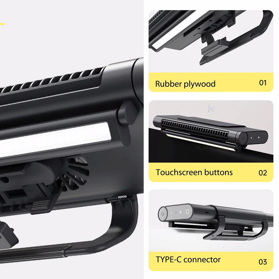 Bladeless Computer Hanging Screen Fan with Light 2000mAh Desktop Fan Cooler Stepless Speed Adjustable Low Noise for Home Office