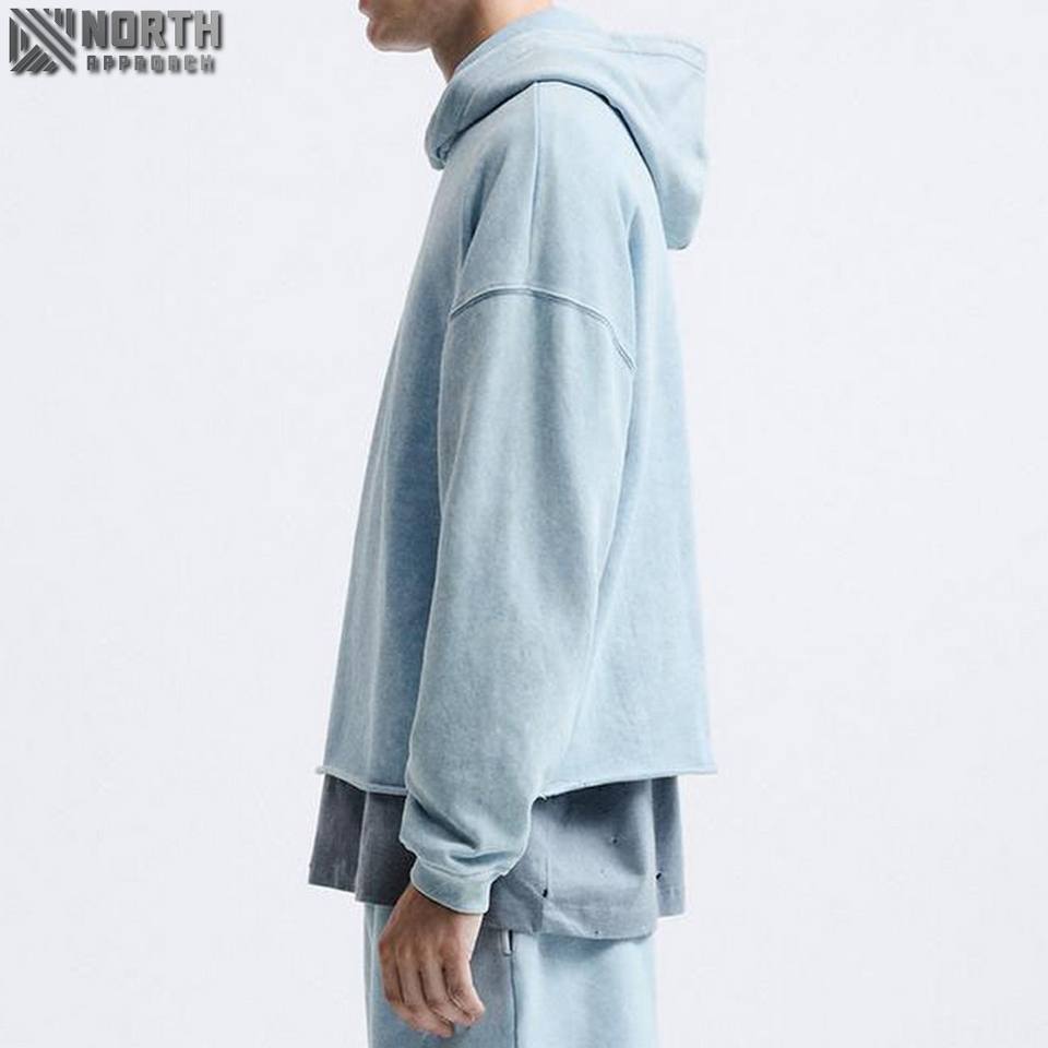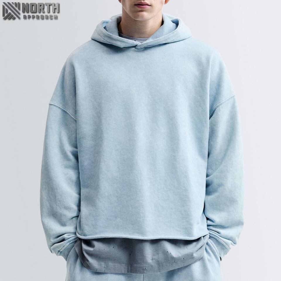 Blank 100% Cotton Drop Shoulder French Terry Cut And Sew Hoodie Streetwear Vintage Wash Raw Hem Cropped Oversized Hoodie