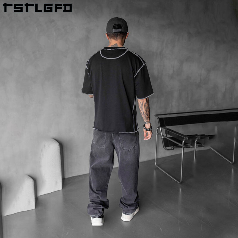 Blank 100% Organic Cotton Cropped Boxy Fit Tshirt Oversized Drop Shoulder Custom Print t Shirt for Men Contrast Stitch T-shirt