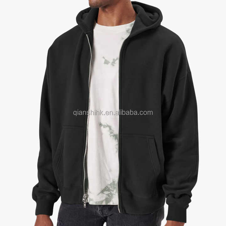 Blank Black Full Zip Hoodie Best Quality Thick Fleece Streetwear Drop Shoulder Essentials Heavyweight Zipup Hoodie Custom