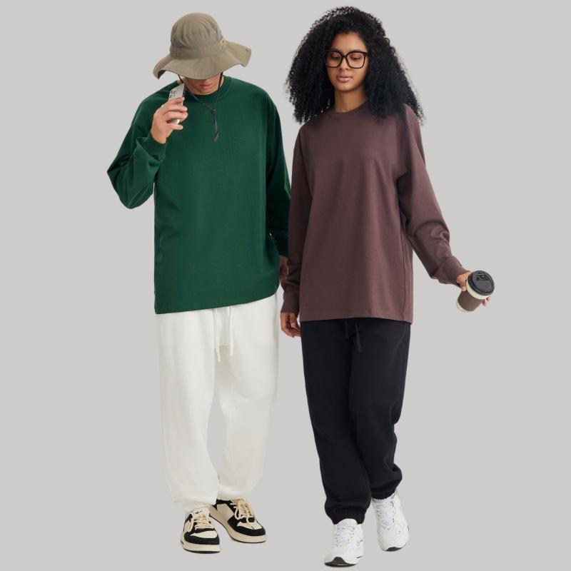 Blank Crew Neck Long Sleeve Shirt Wholesale 240gsm Cotton Men's Custom Screen Print Logo