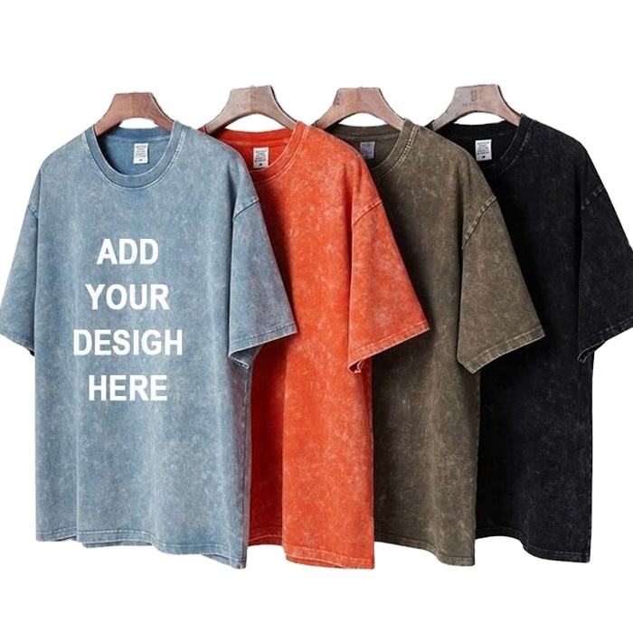 Blank Heavyweight T-shirt Vintage Style Unisex T Shirt Men Short Sleeve Garment Dyed Acid Wash T-shirt