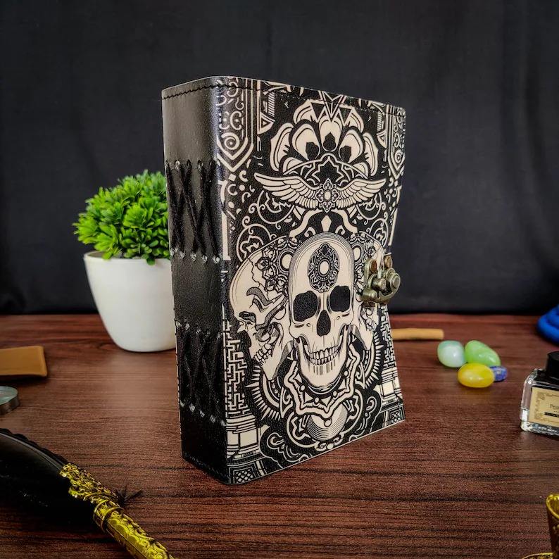 Blank Spell Book of Shadows Skull Lovers Journal Witchcraft Supplies Tarot Gothic Notebook Antique Vintage