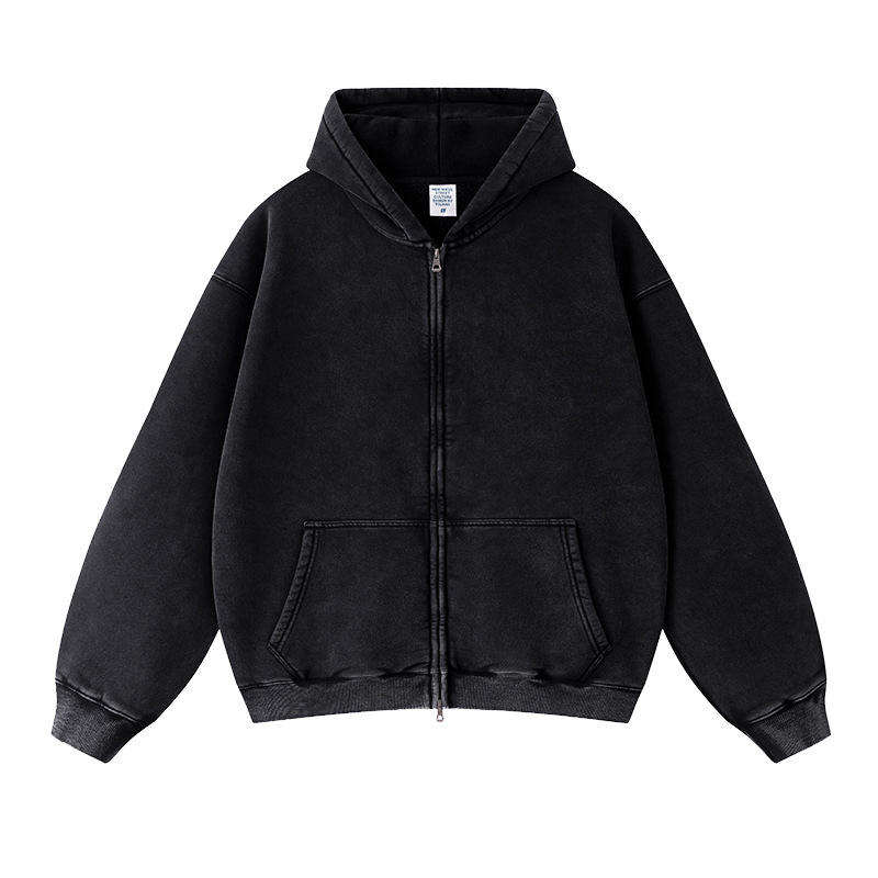 Unisex Zip up Hoodies High Quality Men Oversized Wholesale Custom Heavyweight Acid Wash Embroidered 360g Fabric Pocket