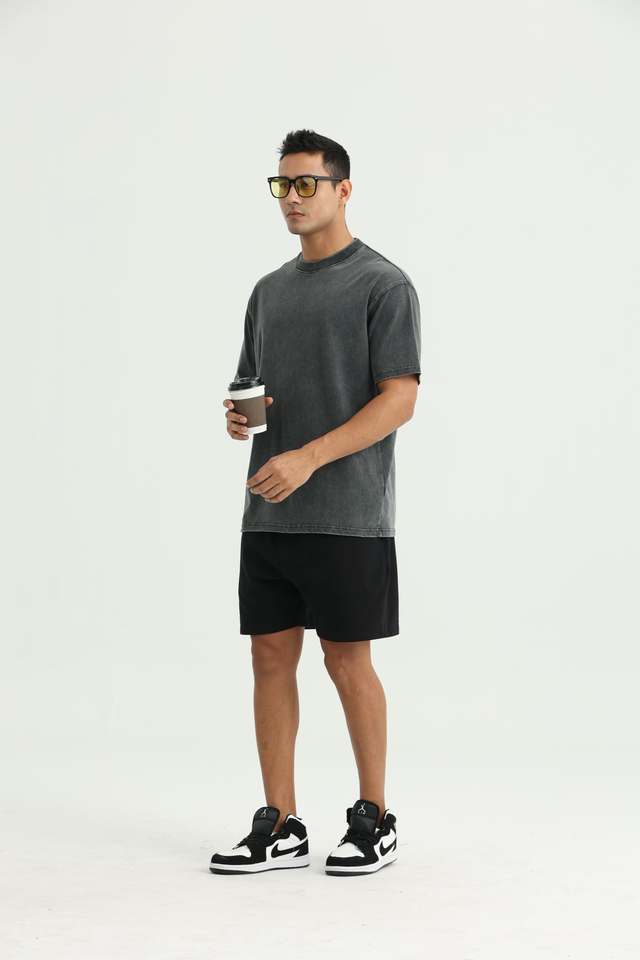BlanqWear Mens O-Neck Short Sleeve Fleece Formal T-Shirt Loose Fit Premium 100% Cotton 280g Anti-Bacterial Quick Dry