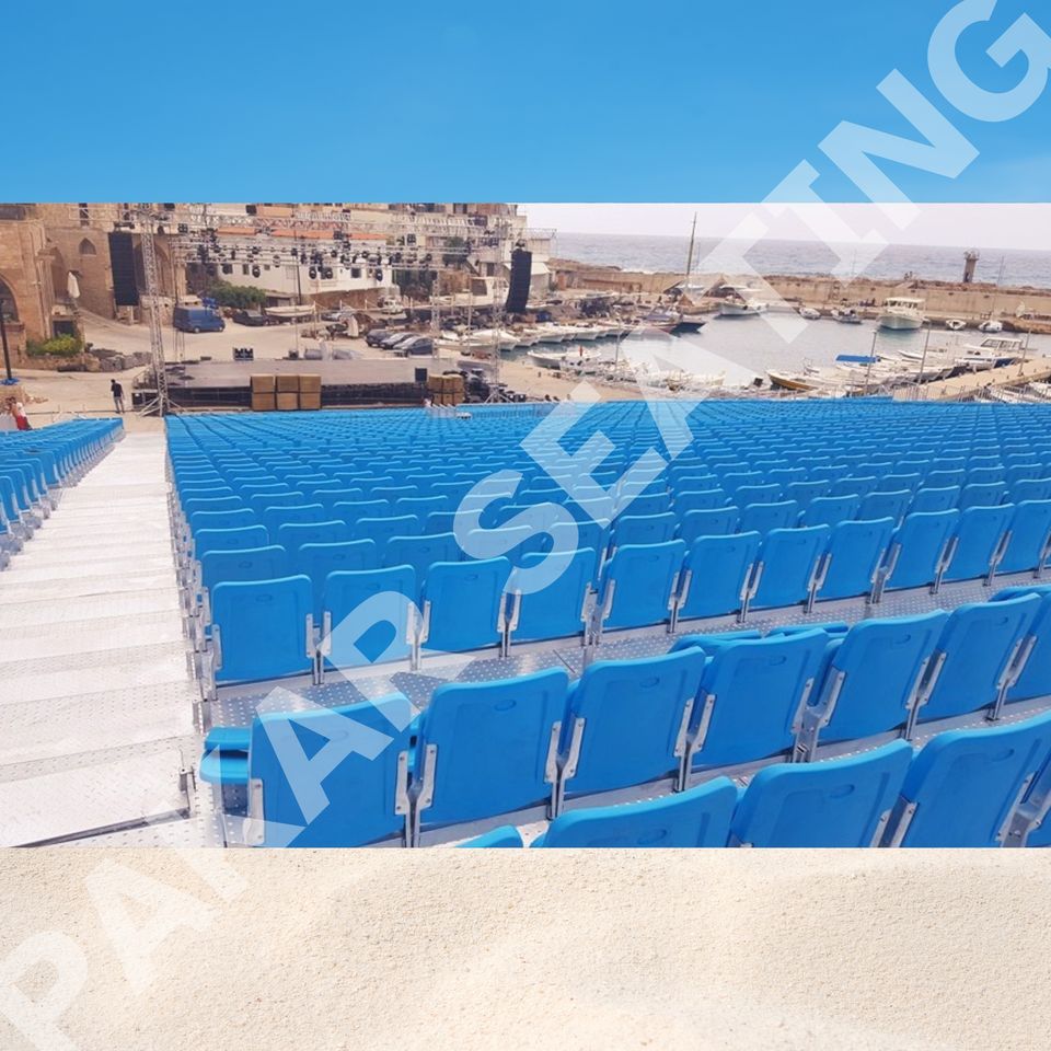 Options:Staircase,press desk, vip seats, bucket or tip-up seat and more.