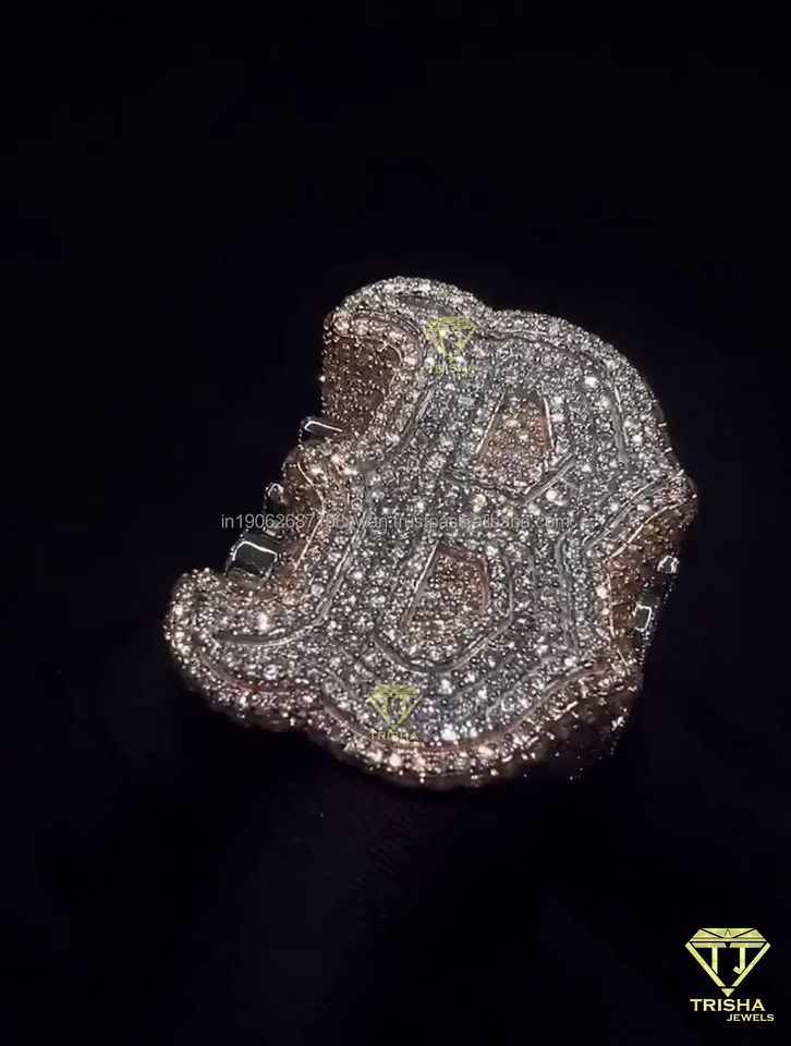 Bling Alphabet B Letter Ring Moissanite Diamond Rose Gold Plated Hip Hop Statement Ring for Men Jewelry for Streetwear