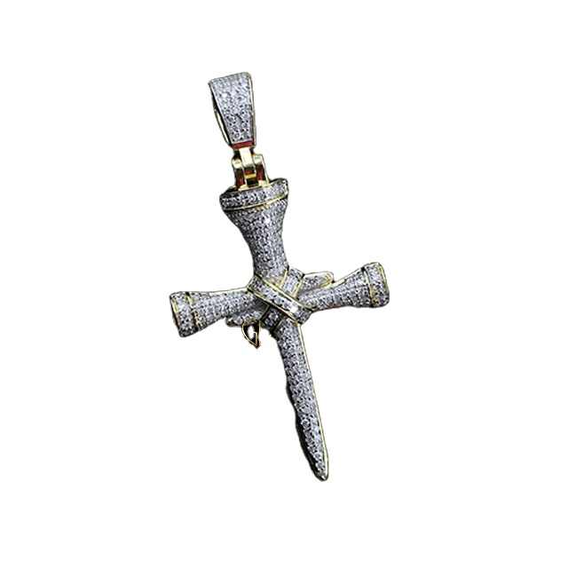 Bling Bling Iced Out 925 Silver Luxury Handmade Jewelry Real Moissanite Diamond Gold Plated Nail Cross Charm Pendant for Men