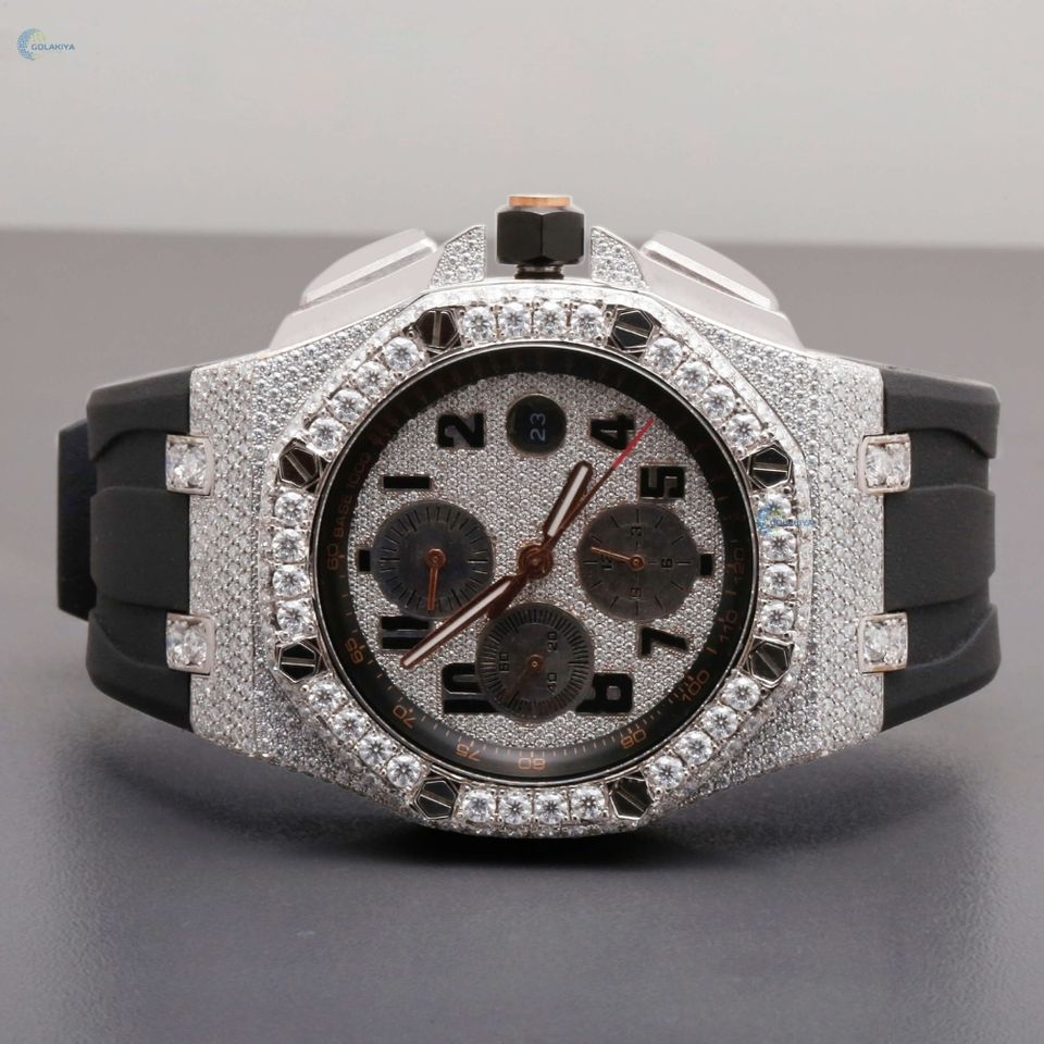 Bling Lab Grown Diamond Watch Black Rubber Strap Design Watch Chronograph Dial Watch For HIm