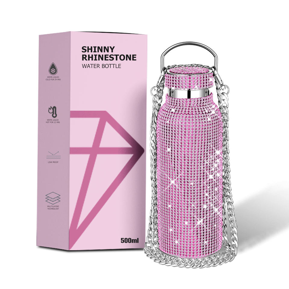 Bling Rhinestone Stainless Steel Double Wall Vacuum Insulated 24-36 Hours Thermal Insulated Leak-Proof BPA Free LED Temperature
