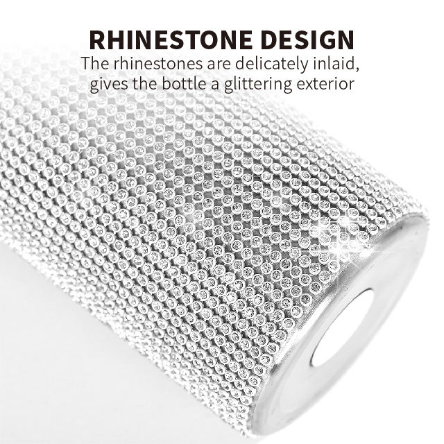 Bling Rhinestone Stainless Steel Thermal Insulated Water Bottle with Handle and Lid Diamond Design Leak-Proof BPA Free