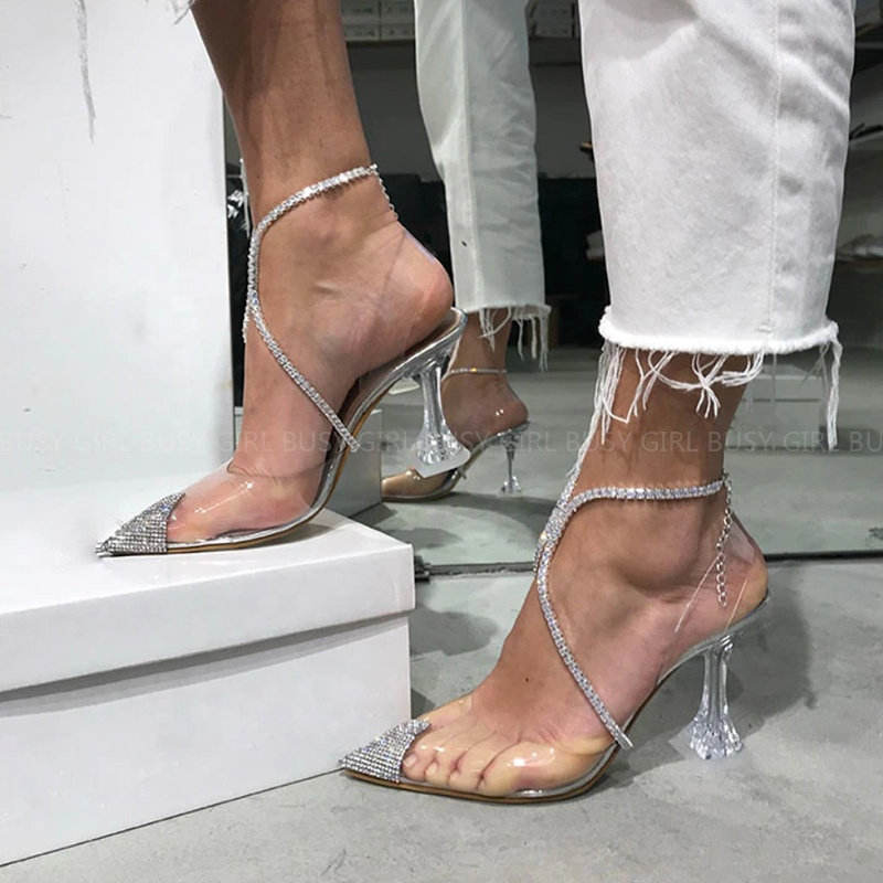 Bling Stiletto High Heels for Women Pointed Toe Platform Pumps with Square Heel in Plus Size for Weddings