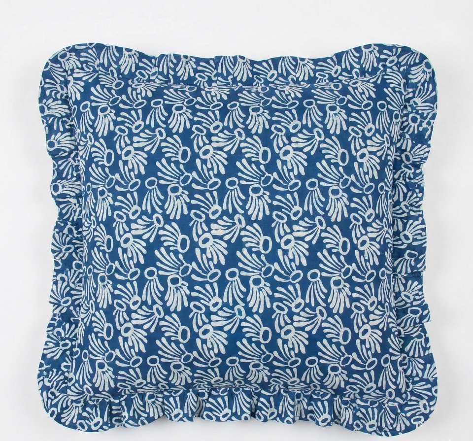 Block Print Boho Cushion Cover with Frill Handmade Cotton Bed Throw Pillows, bohemian pillow cushion covers vintage home decor
