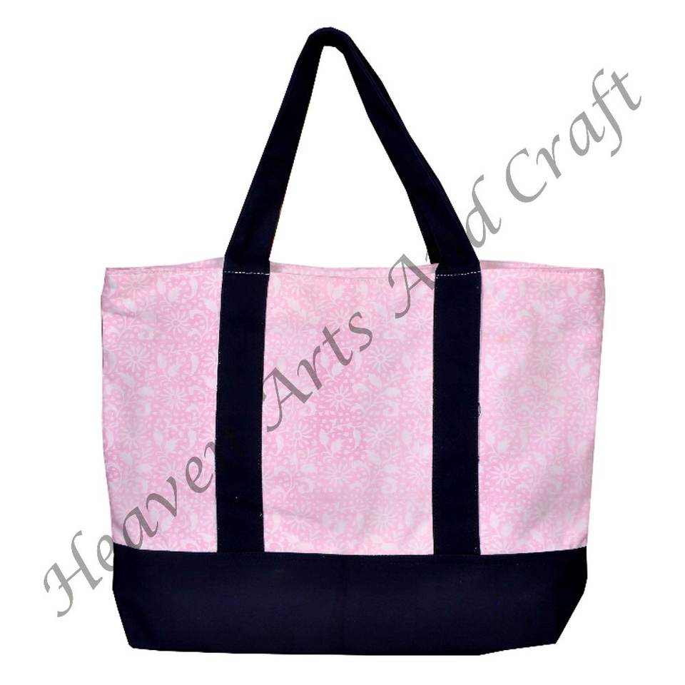 Block Print Cotton Black Handle Hand Block Print Tote Bag Floral Printed Shoulder Carry Tote Bags Wholesale