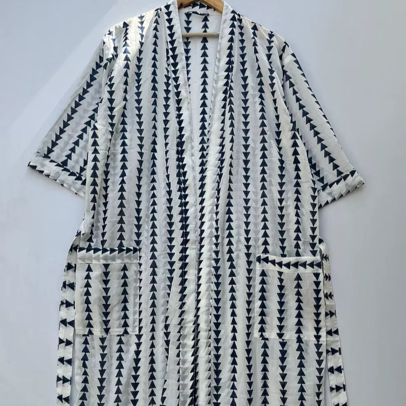 Block Print Cotton Kimono Robe Bridesmaid Dressing Gown Summer Nightwear One Size