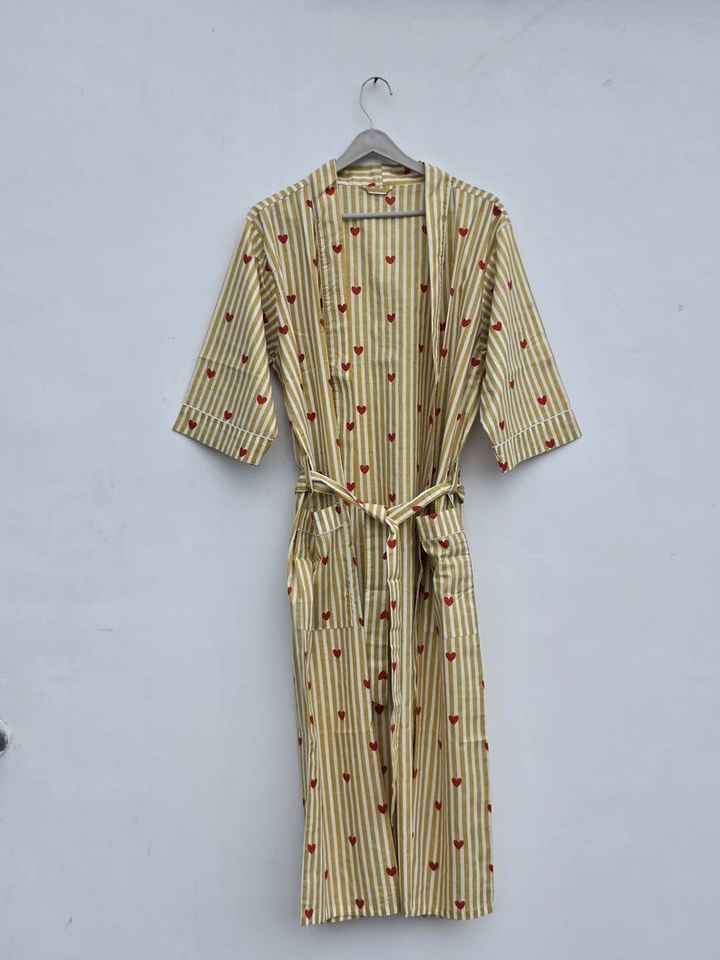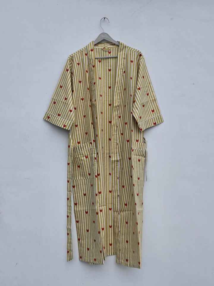Block Print Cotton Kimono Robe Soft Loungewear For Women One Size Fits Small To Extra Large