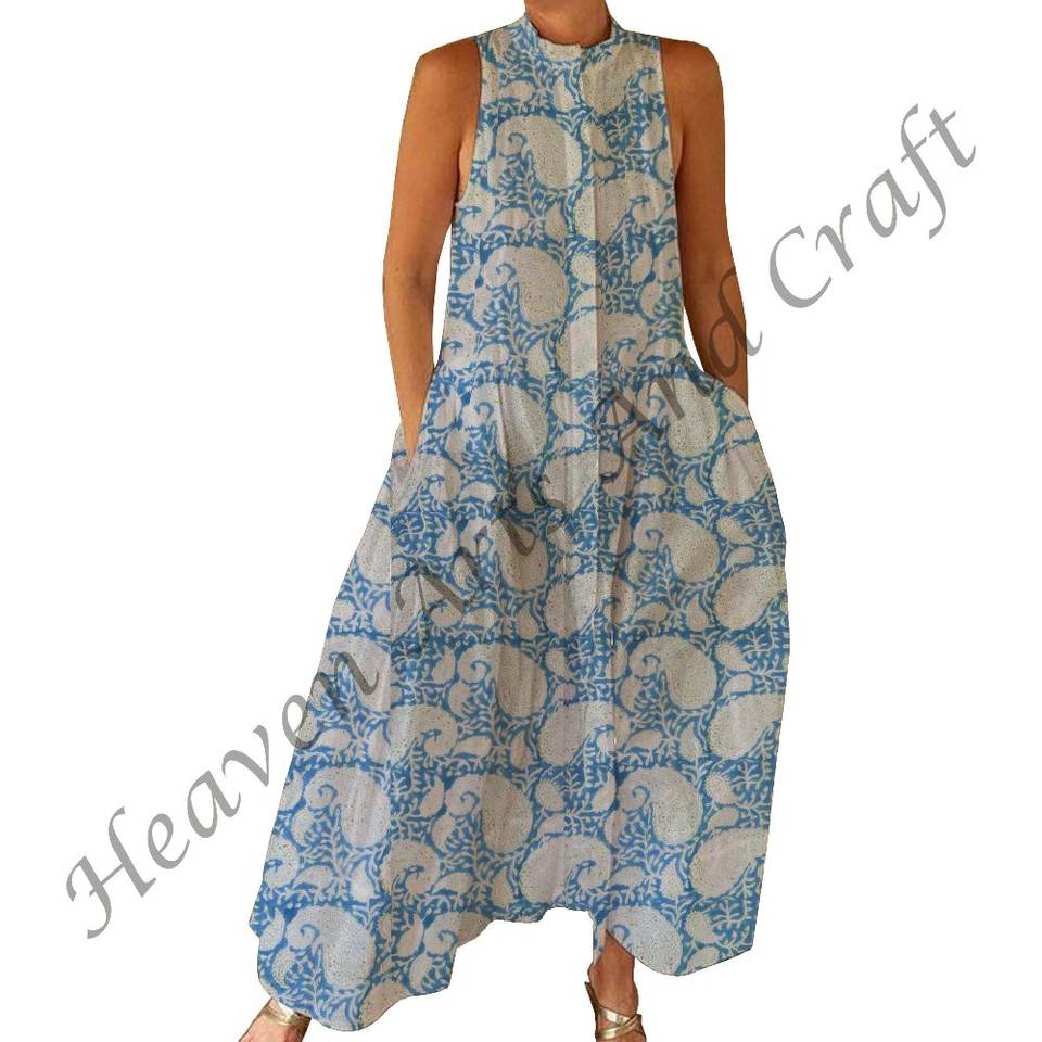 Block Print Cotton Summer Jumpsuit Floral Boho Beach Wedding Jumpsuit Vacation Long Maxi Jumpsuit Zipper Maternity Casual Outfit
