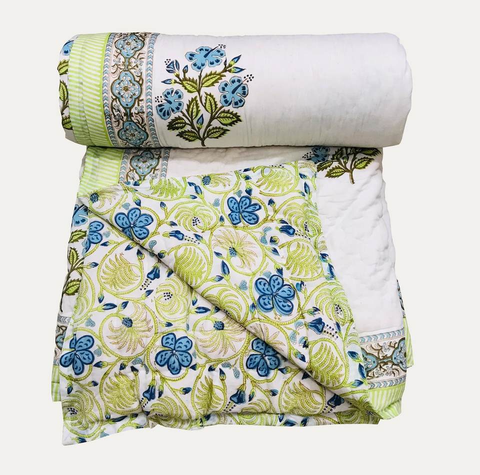 Block Print Indian Reversible Eco-Friendly Organic Cotton Handmade Floral Jaipuri Razai Comforter Bedspread Queen King Size