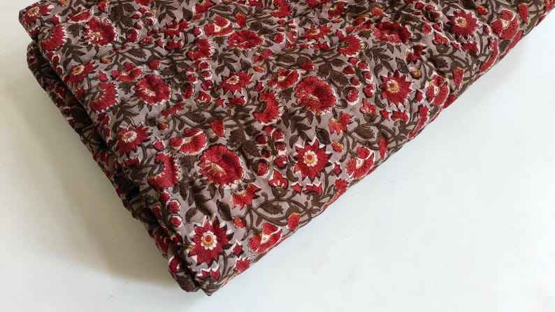 Block Print Quilted Razai Queen Size Floral Cotton Blanket Indian Winter Warm Quilt