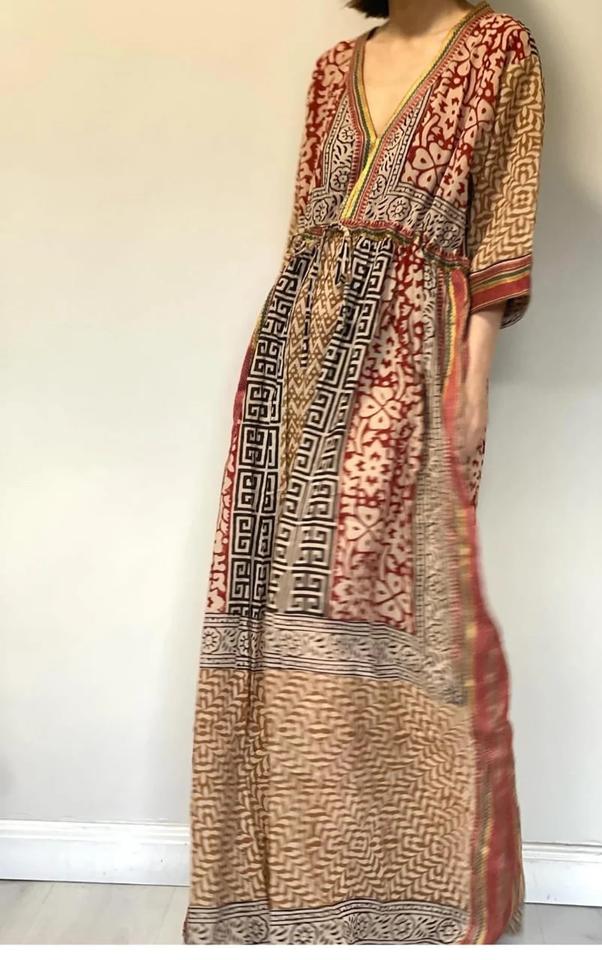 Product Name:Indian Cotton Long Kaftan Dress with Silk Zari Border