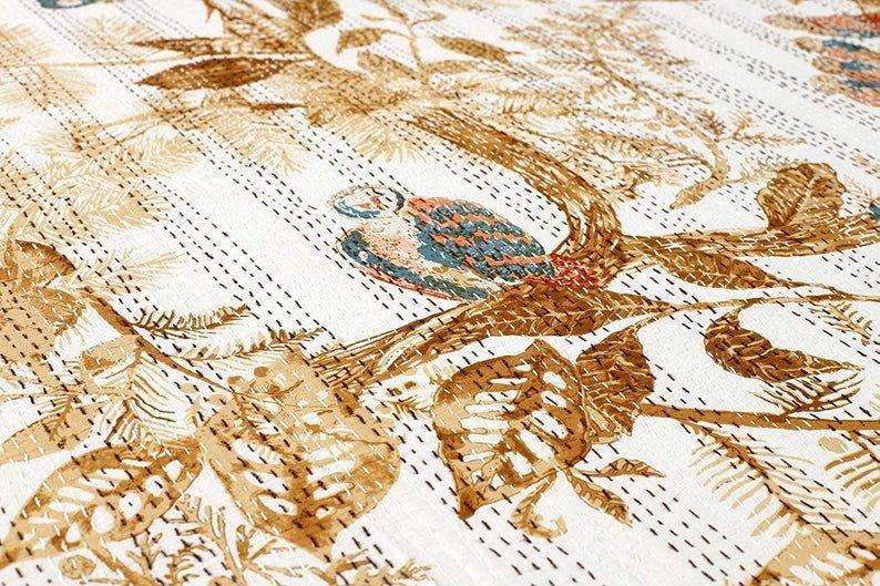 Indian Handmade Vintage Bohemian Reversible Kantha Quilts Block Printed Cotton Quilted Bedspread Floral Comfortable Stitched