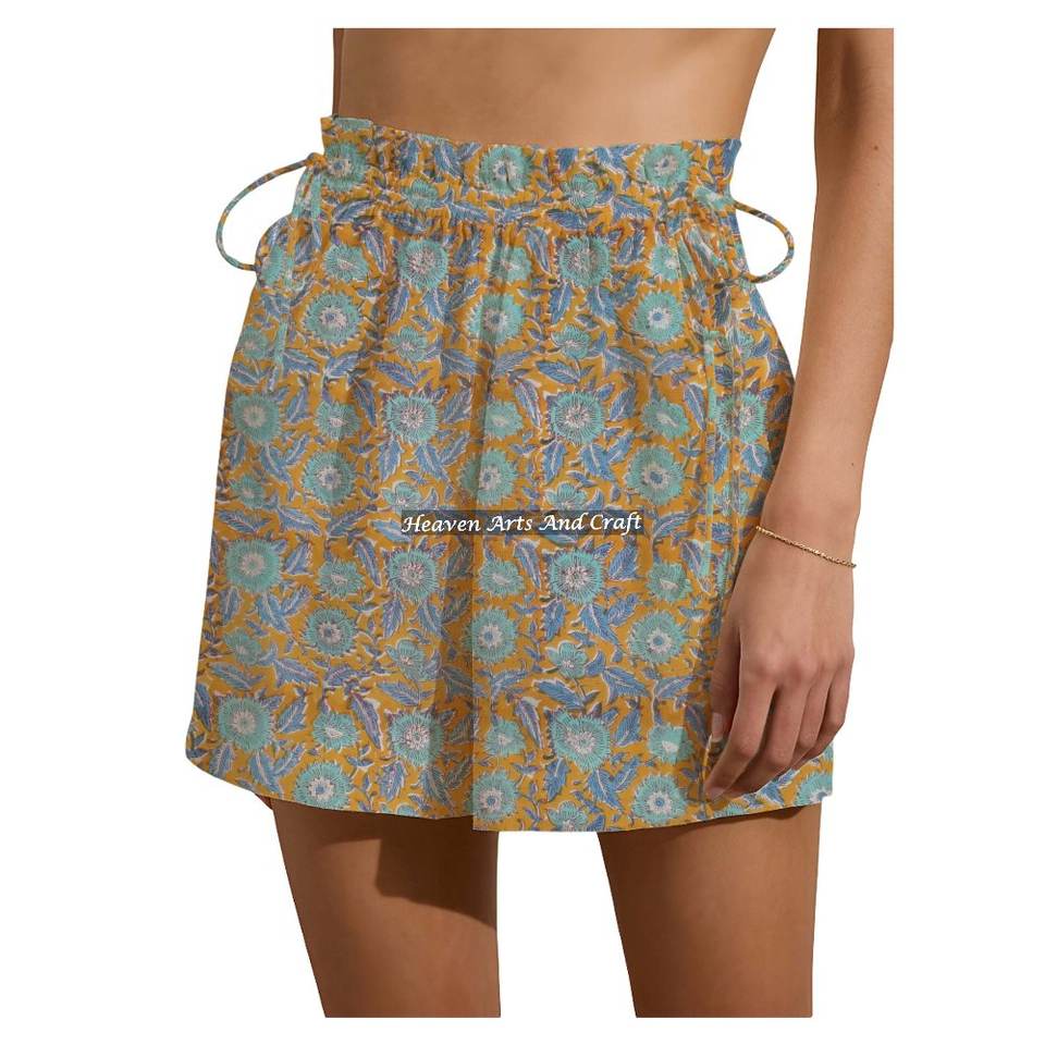 Block Printed Women Drawstring Weekend Shorts Women's Summer Loungewear Cotton Block Print Drawstring Weekend Shorts Beach Girls