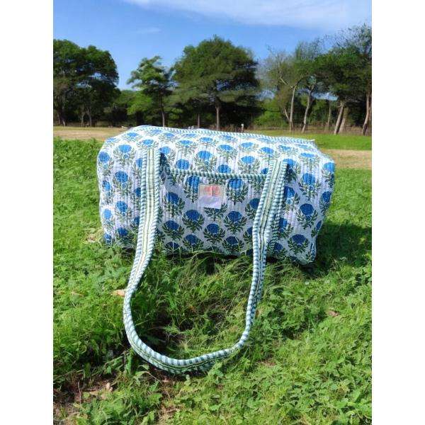 Blockprinted Cotton Quilted Duffle Bag Handmade Lightweight Durable Spacious Interior Stylish Design Ideal For Weekend Trips