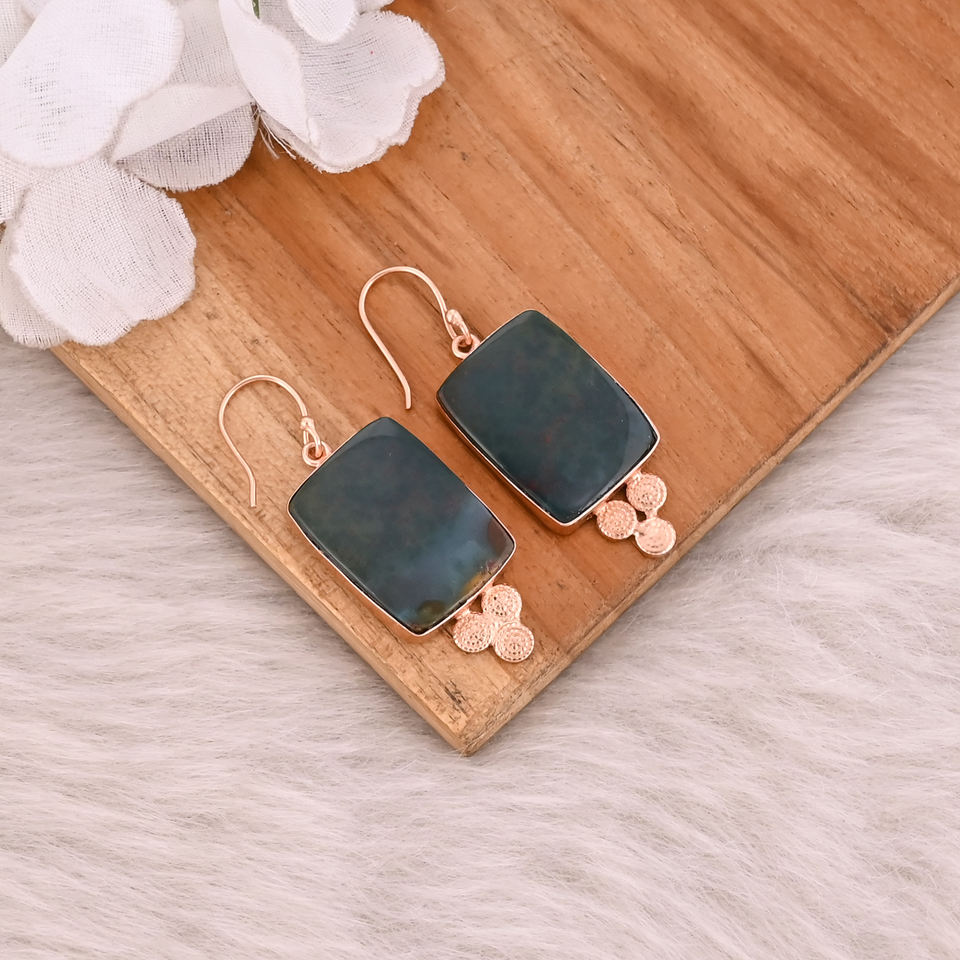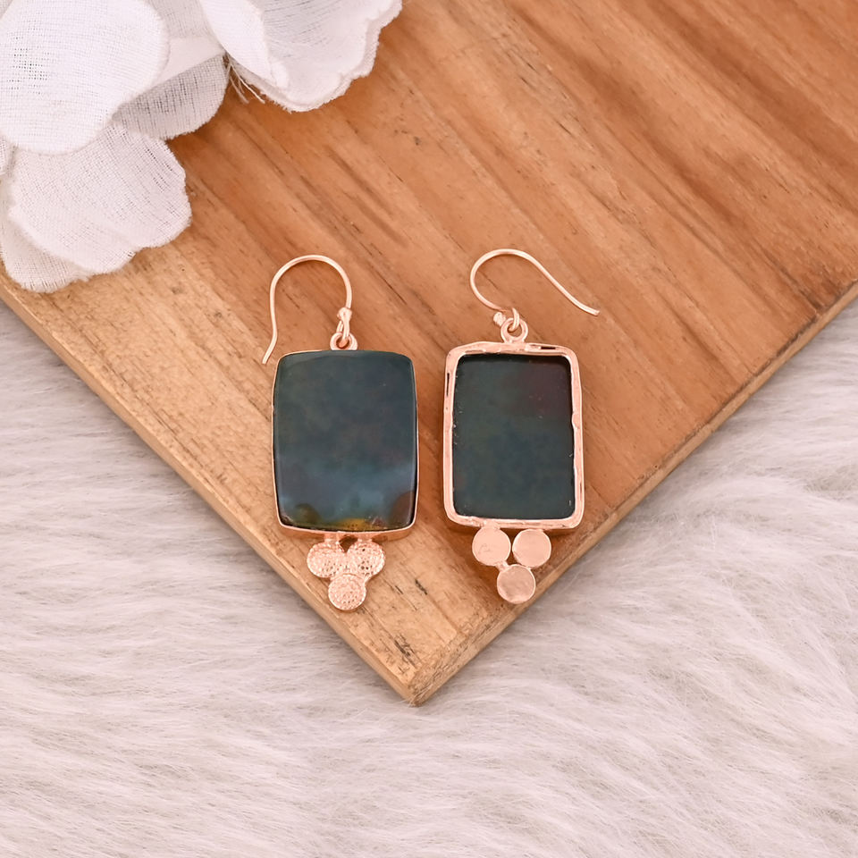 Handmade Designer Dangle Earring in Trendy Rectangle Cushion Blood Agate Gemstone Rose Gold Plated Brass Wedding Engagement Gift