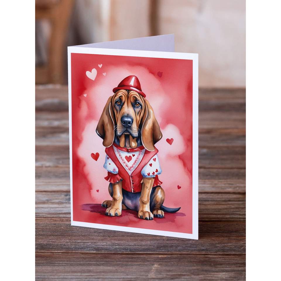Bloodhound My Valentine Greeting Cards Pack of 8 Whimsical A7 Size 5x7 Blank Note Cards with Envelopes